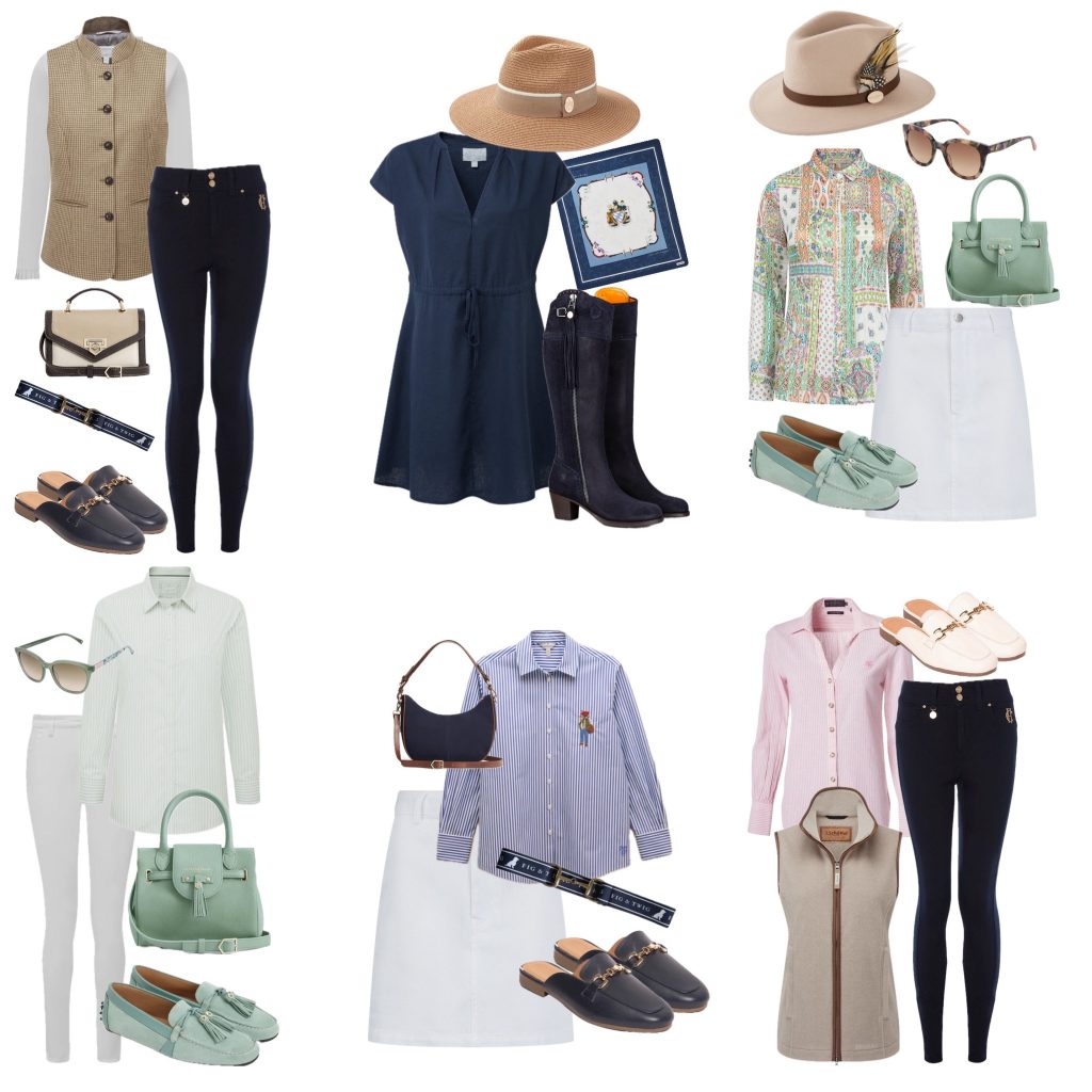 If you’re struggling to put together your look, start with a basic base – I am talking a white or navy dress, or a white blouse and tweed skirt, from here you can accessorise. If you use the rule of three, you can balance out a simple outfit using some colour, or a classic finish. Think about adding a hat, scarf, bag, belt, footwear in a certain colour. For example, team your dress base with a navy hat, bag and loafers/boots. It is the simplest way to put an outfit together.