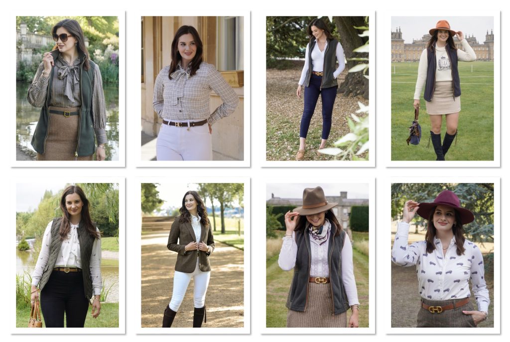 ✔️ Outerwear – Tweed/wax jackets/Blazers are a great layering option for the day, and perfect for those chilly morning, or cooler days. Capes offer a chic alternative to a coat, especially in transitional weather. Gilets gilets gilets! Such a favourite of mine! They really are the perfect layering piece. Opt for a classic fleece or tweed option to keep in country styling. Chunky knit jumpers lean into Autumn, and look great thrown over your shoulders.