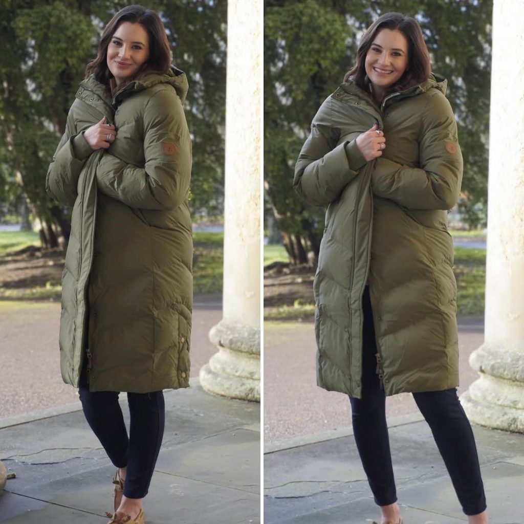 Everyone needs a waterproof jacket in their wardrobe, and this is the one that I’ll often wear for work. It’s lightweight, it’s waterproof, and it’s actually really smart. There is an internal adjustable waist, which gives the jacket a feminine and flattering fit, but the fact it is waterproof makes it perfect as your smart coat on rainy days.