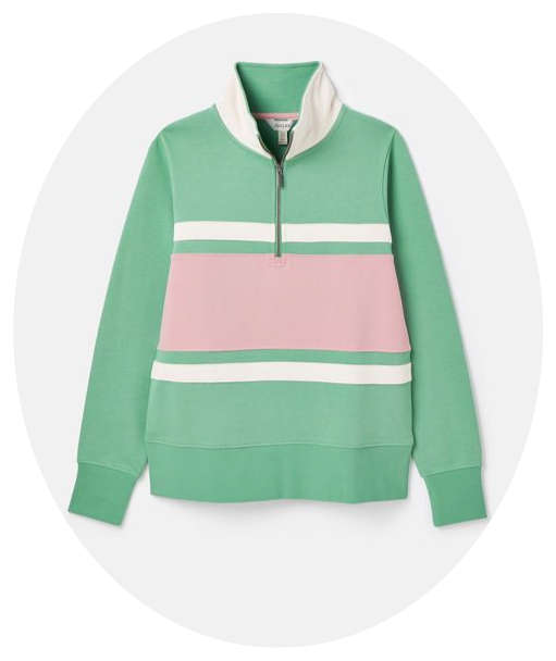4. Joules Tadley Quarter Zip Sweatshirt in Green + Pink