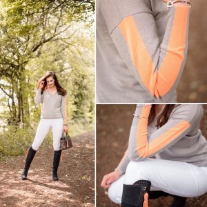 I paired the jumper here with some simple white jeans and tan accessories. The tan and tangerine complimented each other perfectly, and the white jeans allows the jumper to speak for itself. I also teamed the jumper with navy boots and a grey bag, with coral tassel accessories, to bring out the tangerine in the jumper even further. There are so many looks that could be created with this jumper – I have only just started!